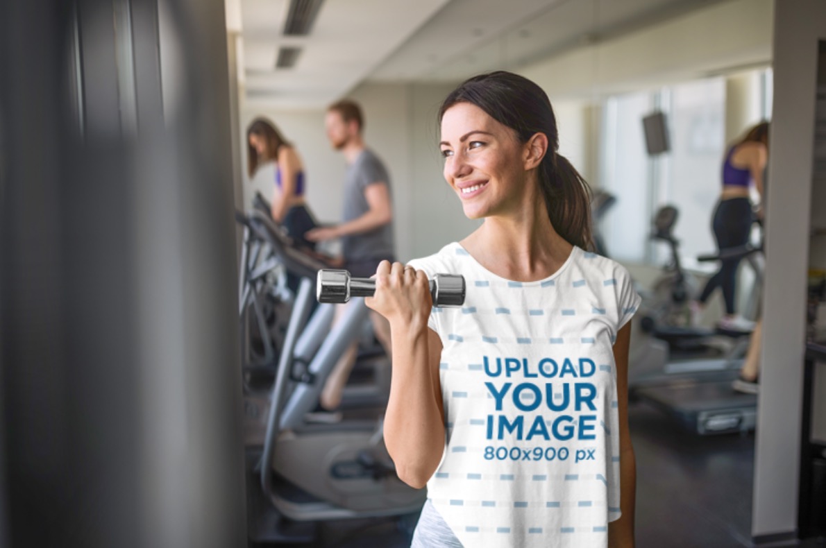 Mockup Of A Woman Wearing A T-Shirt At The Gym