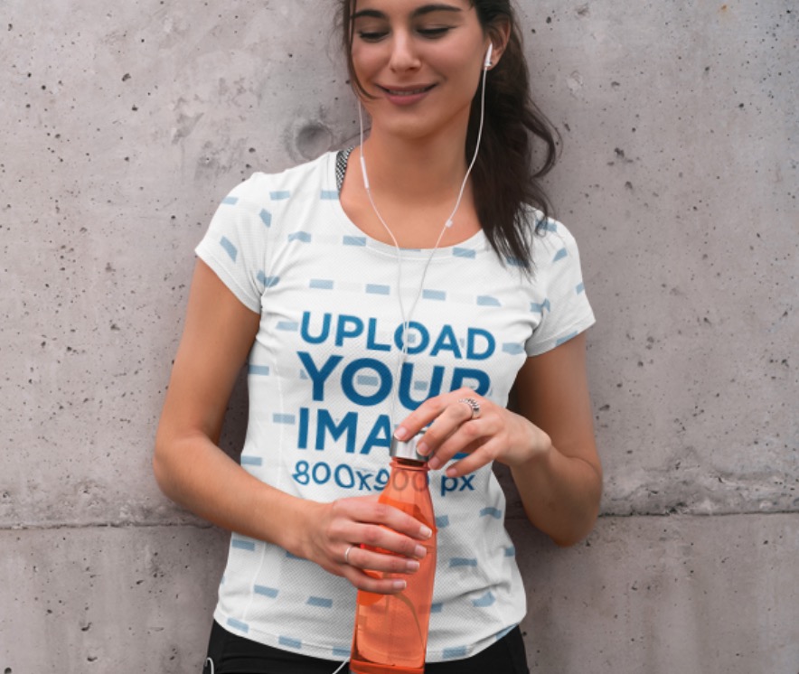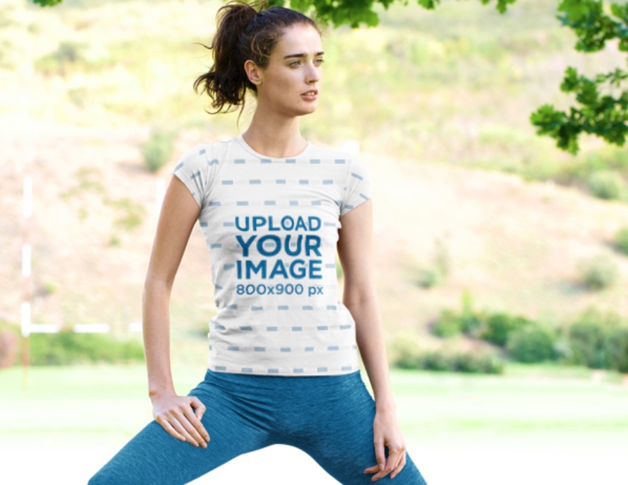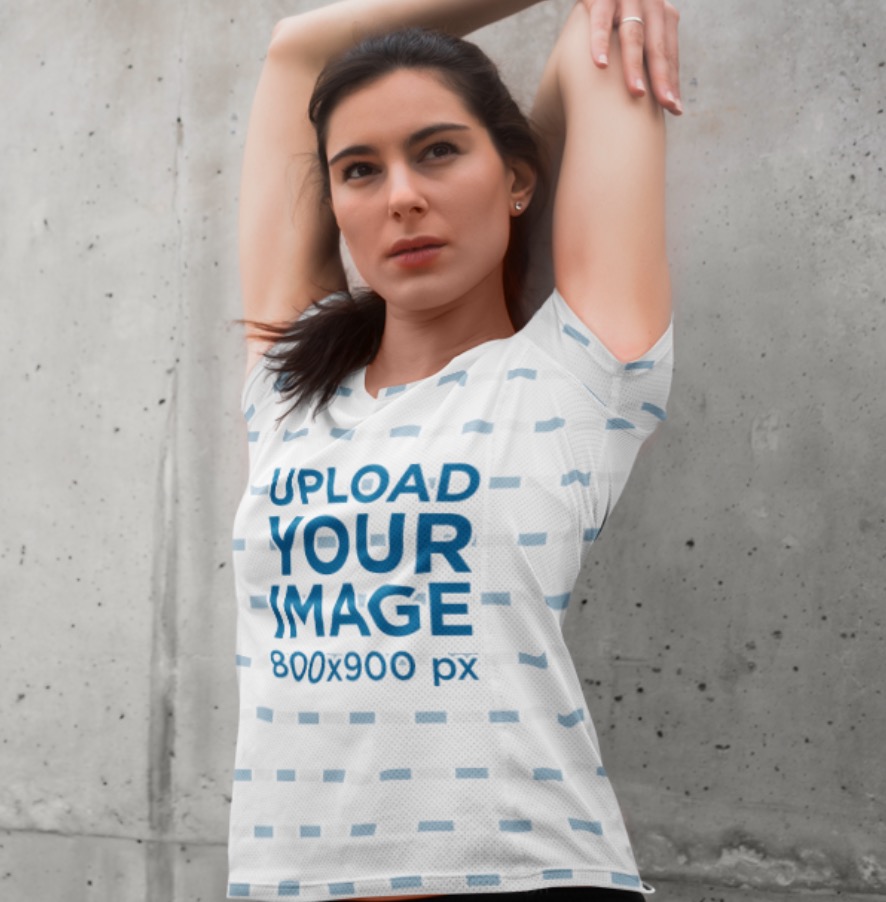 Sublimated T-Shirt Mockup Of A Woman Stretching