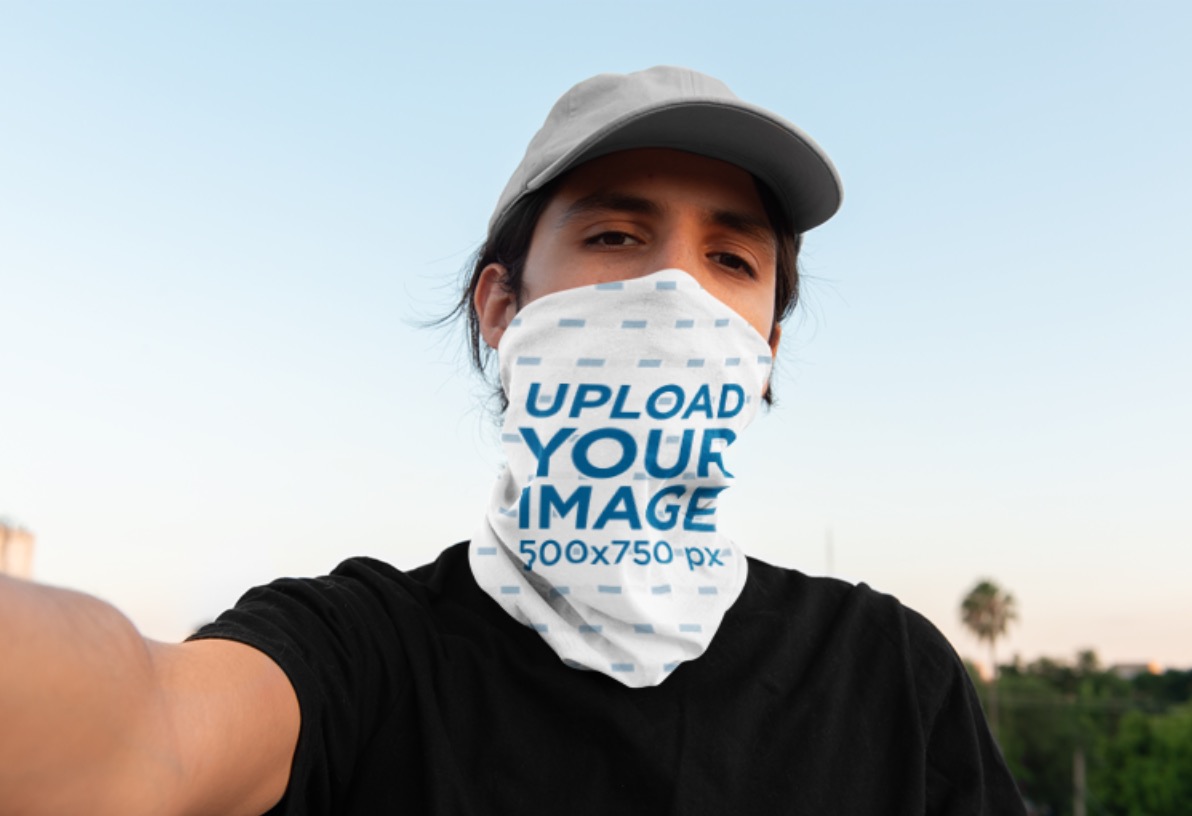 Selfie Mockup Of A Man Wearing Neck Gaiter